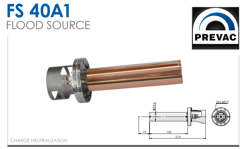 Low cost electron Flood Source for charge neutralisation of insulators or semiconductors in XPS/AES and SIMS applications.The Flood Source operates in two energy ranges, is fully software controlled and can also be supplied with custom insertion lengths (145 – 421 mm, other on request) and shielding materials, e.g. mu-metal, copper.