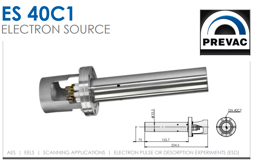 The ES 40C1 Electron Source is a scanable electron gun with small spot profile. Due to the high transmission of its Einzel-Lens, the ES 40C delivers a high electron beam current over a wide energy range.