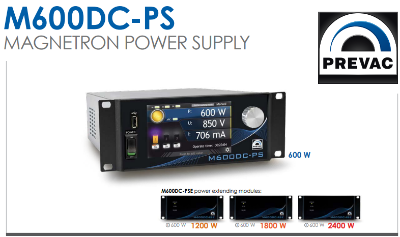 The M600DC-PS is compact switch-mode DC power supply designed to drive magnetron sources. All adjustable parameters are displayed on the large TFT display with touchscreen.