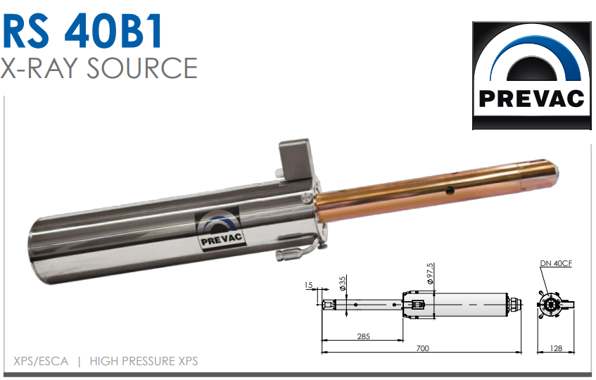 The RS 40B1 X-ray Source is a high intensity twin anode Al/Mg source optimized for XPS and high pressure XPS experiments. Design of the anode, filament and source housing guarantees maximum X-ray intensity and very low crosstalk between the anode faces.