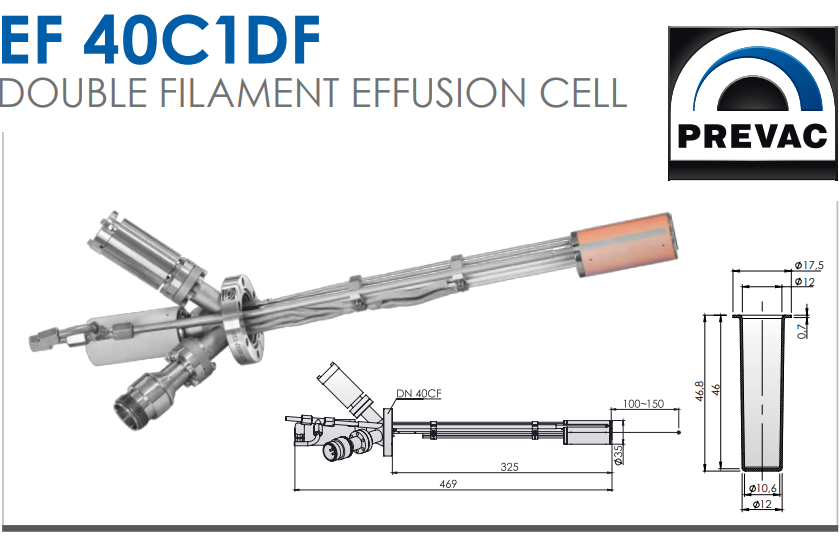 EF 40C1DF Double Filament Effusion Cell is a source with two independently operated filaments for greater convenience in the evaporation process.